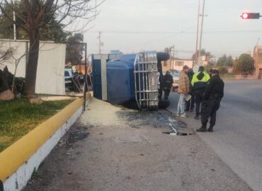 Vuelca camión cargado de maíz en la colonia Nueva Banquetes; no hubo lesionados