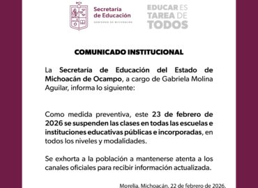 Comunicado SEE 098/2026 Morelia, Michoacán, 22 de febrero de 2026.- La secretaria de Educación del Estado, Gabriela Molina, informa que […]