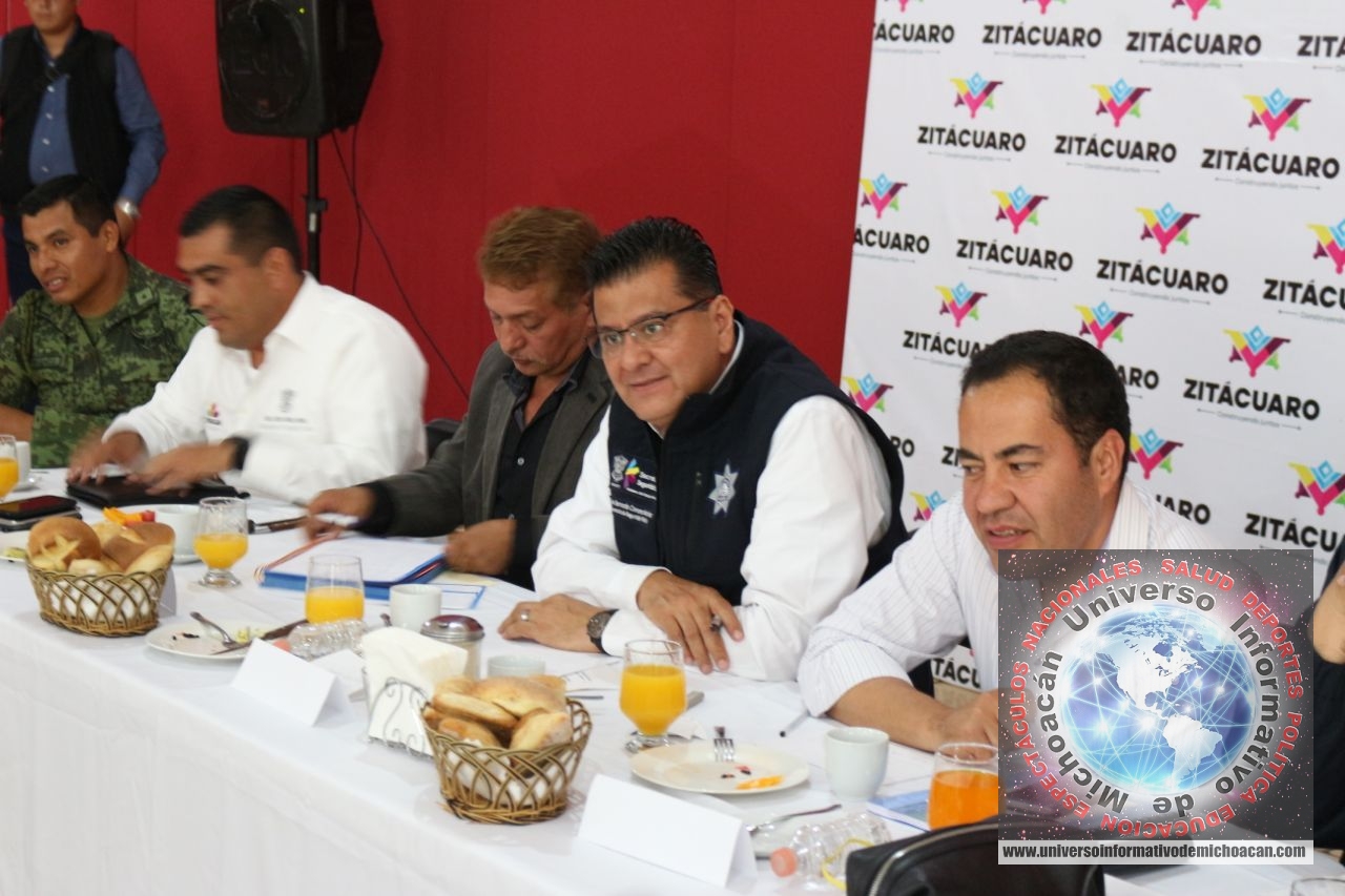 En la reunión estuvieron presentes Carlos Herrera Tello, presidente municipal de Zitácuaro; Javier Ocampo García, fiscal regional de la Procuraduría General de Justicia del Estado (PGJE); José de Jesús Flores García, coordinador regional de la Policía en Michoacán; Luis Germán Francisco, subteniente del 90 Batallón de Infantería destacamentado en Zitácuaro, y Juan Manuel Negrete Hernández, coordinador regional del C5i Zitácuaro.