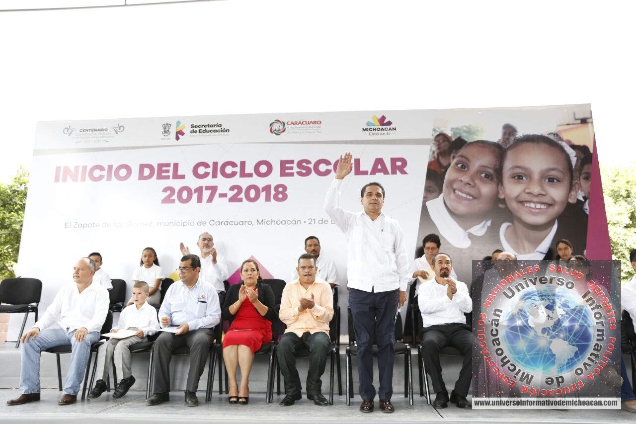 Al inaugurar formalmente esta mañana el inicio del ciclo escolar 2017-2018 en el municipio de Carácuaro, en la Escuela Primaria Federal “Vicente Guerrero”, donde cursó su formación inicial, el mandatario estatal se dijo orgulloso del crecimiento que presenta la comunidad gracias al esfuerzo de todas y todos, ya que hoy en día se brinda una educación de calidad.