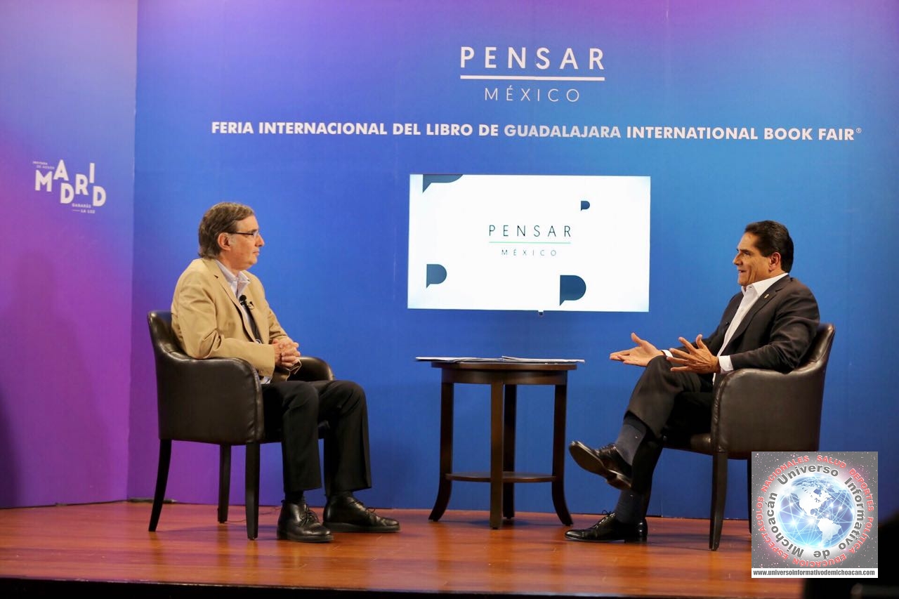 Al participar esta tarde en el programa “Pensar México, Diálogos sobre los retos del próximo sexenio”, con el académico José Woldenberg en el marco de la Feria Internacional del Libro de Guadalajara, el mandatario michoacano habló sobre el contexto político y social de nuestra nación.