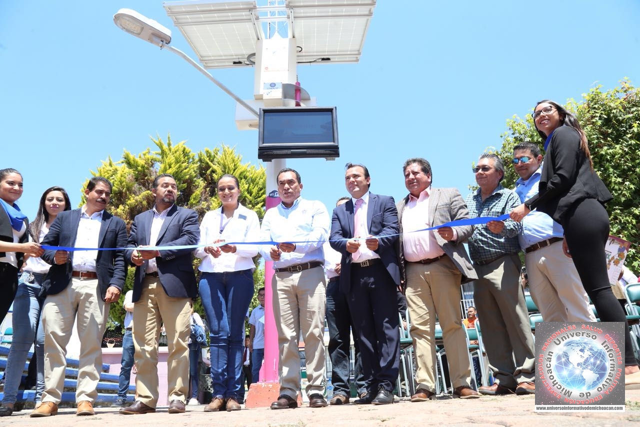 Zitácuaro, Michoacán, 9 de marzo de 2018.- “Es necesario aprovechar las señales inalámbricas de internet y de telefonía para llegar a escuelas, hospitales y plazas públicas, y con ello, incrementar el porcentaje de usuarios de internet, esto en beneficio de la educación y del desarrollo de Michoacán”, indicó el secretario de Gobierno, Adrián López Solís al encabezar la presentación y puesta en marcha del Prototipo Sistema IS-WIFI SOLAR por la empresa michoacana, Tonaly.