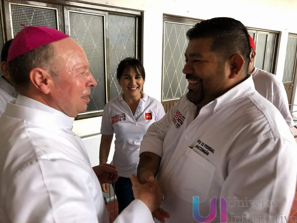 Durante la visita de cortesía que Paco Hucus abanderado del PT, MORENA y PES hizo a Monseñor Cristóbal Ascencio García, Obispo de la Diócesis de Apatzingan, con quien sostuvo un dialogo constructivo, expuso ante el Jerarca de la Grey Católica, los lineamientos del Proyecto Alternativo de Nación, que contempla no solo fortalecer el rubro económico, sino también impulsar el desarrollo social, la recuperación de valores, la cultura y la educación, pues ello es fundamental para la reconstrucción del tejido social y sacar adelante a este Distrito a Michoacán y a todo el país de la crisis económica y de seguridad por la que atraviesa actualmente.