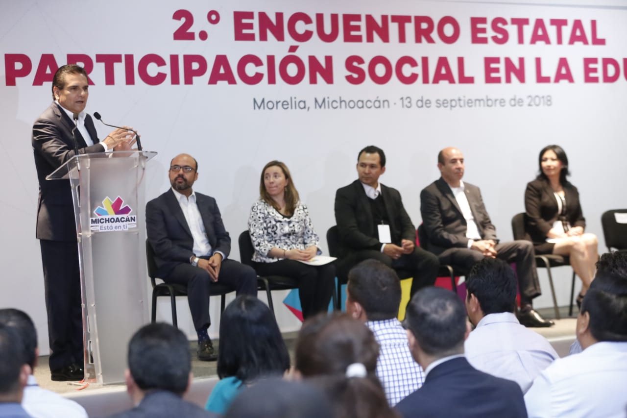 Morelia, Michoacán, a 13 de septiembre de 2018.- En el segundo encuentro estatal de Participación Social en la Educación, el Gobernador Constitucional, Silvano Aureoles Conejo, hizo un llamado a todos los sectores involucrados a reactivar el Consejo Estatal de Participación Social en Educación y completar la conformación de los consejos municipales en los 113 ayuntamientos del estado, los cuales son pieza fundamental para avanzar en los indicadores educativos, ya que son encargados de vigilar y cuidar la formación de la niñez y juventud michoacanas.