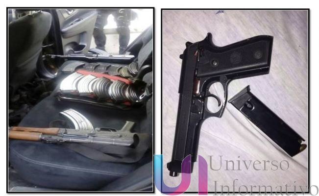 En la primera unidad, se localizó un arma de fuego AK47 y un aditamento lanzagranadas calibre .40 mm, así como 540 cartuchos útiles calibre 7.62, 223 y .12 mm, además de tres artefactos explosivos de fabricación casera, que también fueron asegurados.