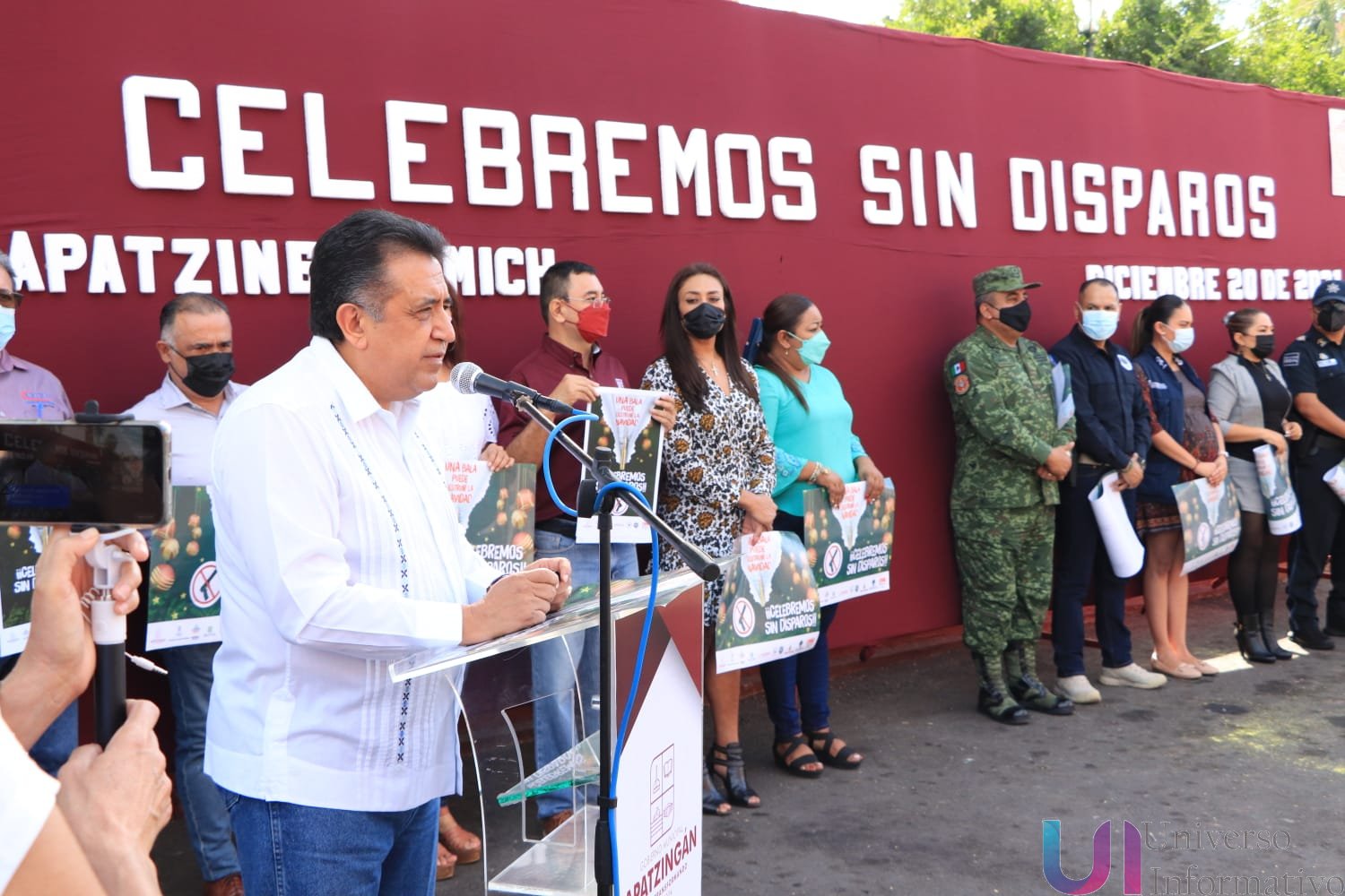 Apatzingán, Mich.- a 20 de diciembre del 2021.- Con la finalidad de concluir el año 2021 y comenzar el 2022 con saldo blanco, las autoridades municipales y de seguridad dieron el banderazo de arranque del operativo “Celebremos sin disparos” exhortando a la ciudadanía a no usar armas de fuego durante las celebraciones de Navidad y Año Nuevo, ya que dicha práctica podría enlutar a una familia.