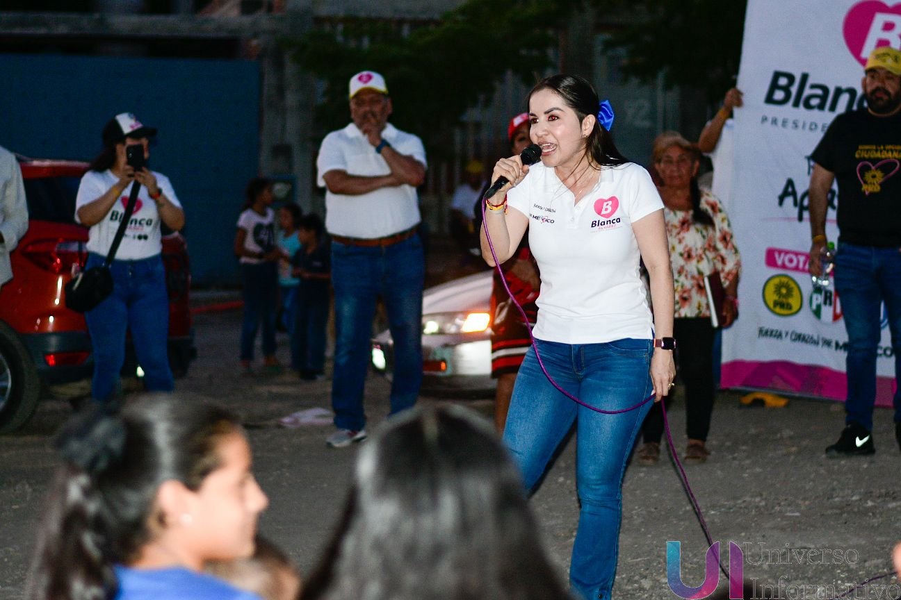 Apatzingán, Mich., 01 de mayo de 2024.- La candidata a la presidencia municipal, Blanca Álvarez, celebró importantes encuentros con los habitantes de las colonias Valle Dorado, Mirador del Valle y El Varillero, en los que abordó los desafíos y necesidades que enfrentan cotidianamente los ciudadanos en cuanto a los servicios municipales.