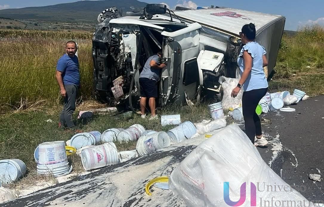 El incidente involucró a un vehículo de carga pesada que transportaba insumos para la elaboración de paletas. Por razones aún no determinadas, el vehículo volcó, resultando en la dispersión de la materia prima y los envases a lo largo de la carretera.
