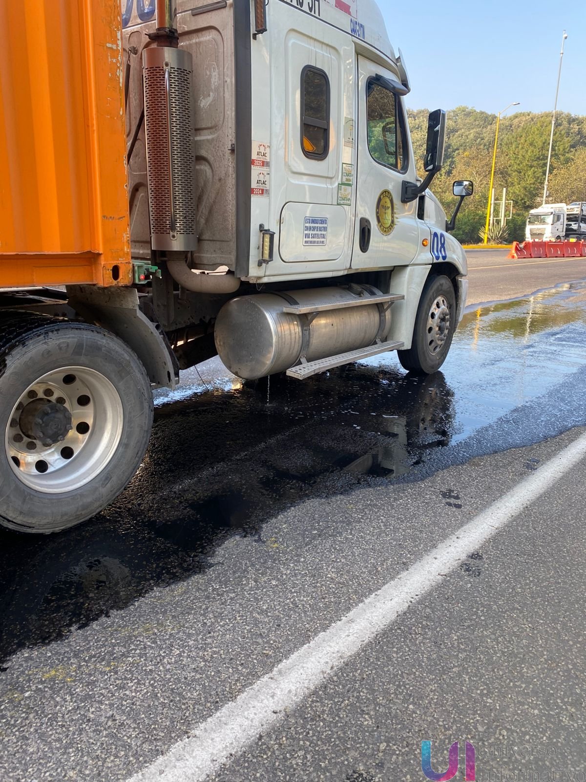 El tráiler involucrado, de color blanco/amarillo con placas 43AJ3H, impactó contra la barrera del sistema antieludidos de la caseta. Las autoridades de Auxilio Vial y los elementos de la Guardia Nacional se hicieron cargo de la situación.