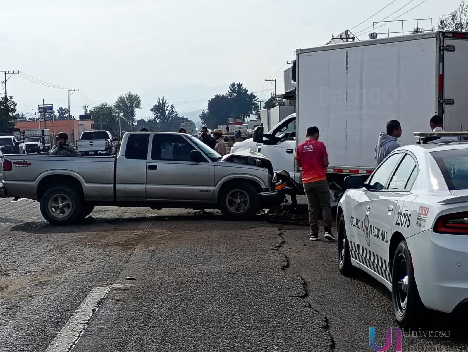 De acuerdo con los primeros reportes, en el percance se vieron involucradas una camioneta de doble rodada con capacidad de tres toneladas y una camioneta tipo pick-up, las cuales colisionaron por causas que aún están siendo investigadas.