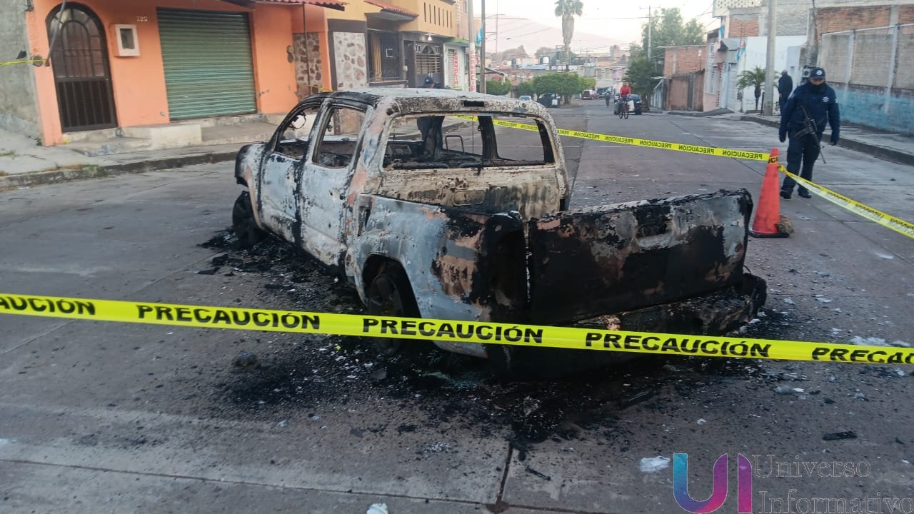 La unidad, una camioneta pickup de cuatro Puertas que quedó reducida a su estructura metálica, se encontraba en medio de la vialidad y presentaba daños totales en carrocería, cristales y llantas. La zona fue acordonada con cinta de precaución, mientras personal policial resguardaba el perímetro para preservar posibles indicios.