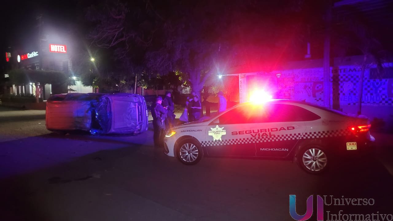 Apatzingán, Mich., 20 de enero de 2026.— Un hombre resultó lesionado durante la madrugada de este martes luego de sufrir una aparatosa volcadura vehicular sobre la avenida Francisco I. Madero, a la altura del hotel Cas-Inn, en la colonia José María Morelos, informaron autoridades de la Guardia Civil.