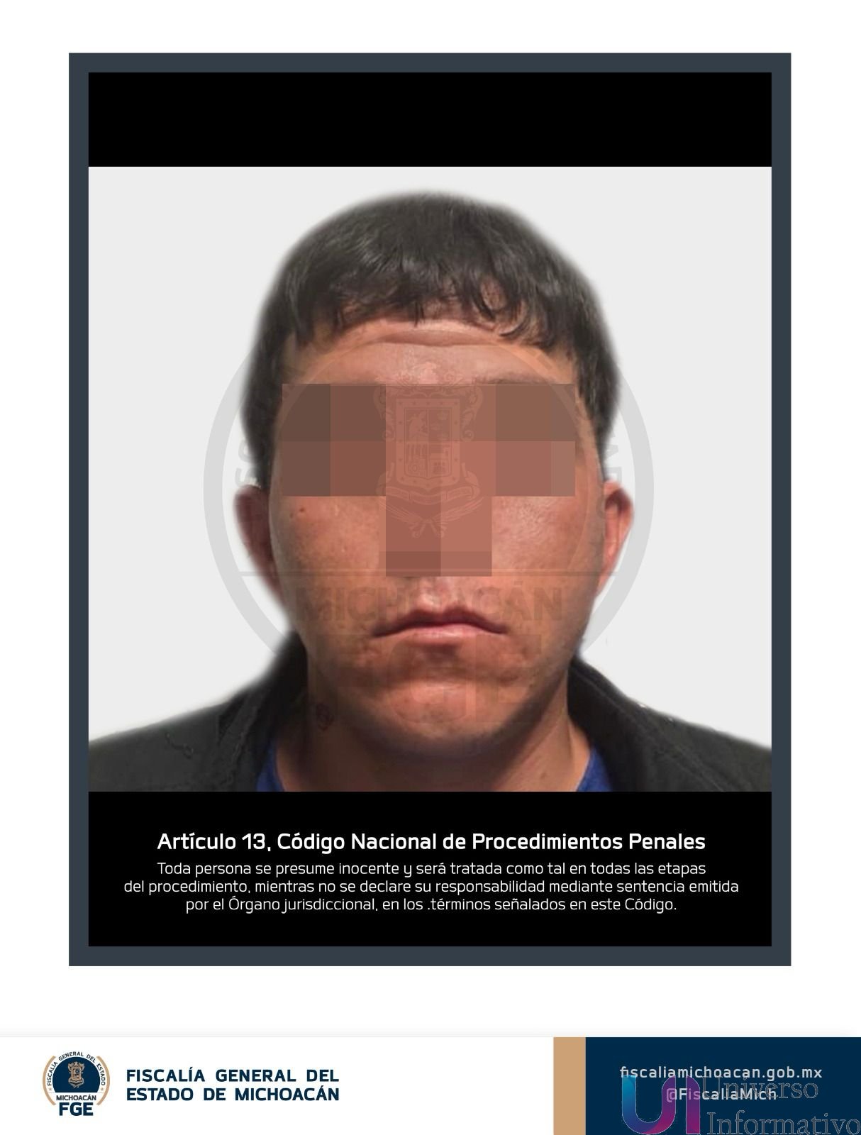Jacona, Michoacán, 15 de febrero de 2026.- En una acción coordinada, la Fiscalía General del Estado de Michoacán, con apoyo de la Guardia Civil, cumplimentó una orden de aprehensión en contra de Marco Antonio “N”, alias “El Güero Metralletas”, por su presunta responsabilidad en el delito de homicidio calificado.