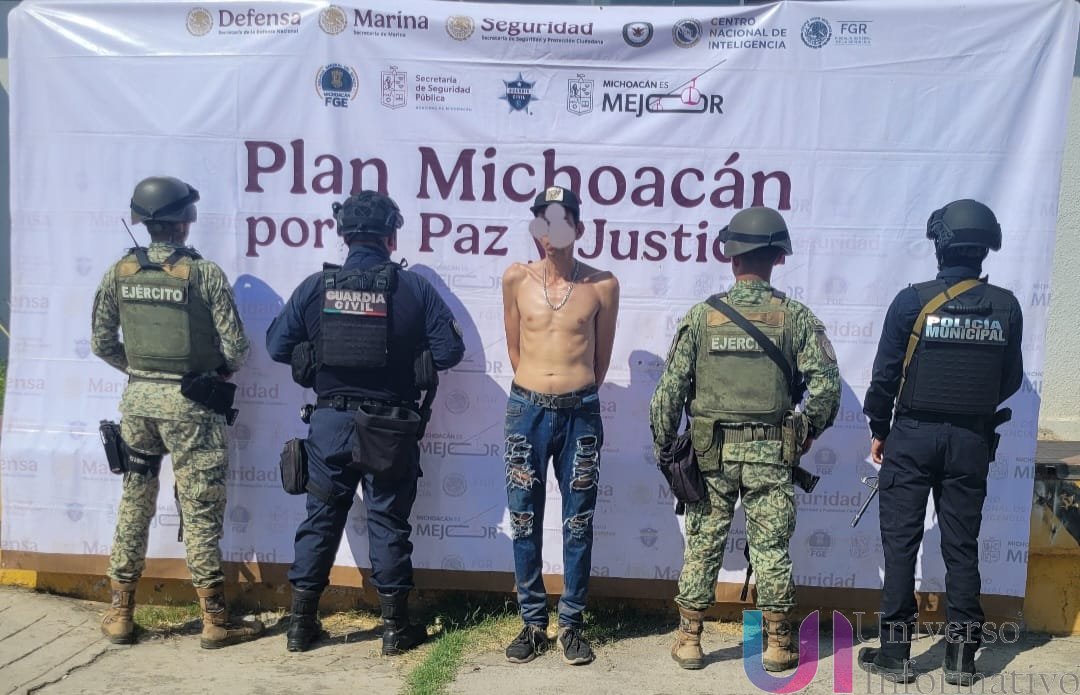 De acuerdo con el informe oficial, los hechos se registraron alrededor de las 15:15 horas sobre la calle Primer Tribunal de Ario, donde elementos de seguridad que realizaban recorridos de disuasión del delito detectaron a un hombre en actitud sospechosa.