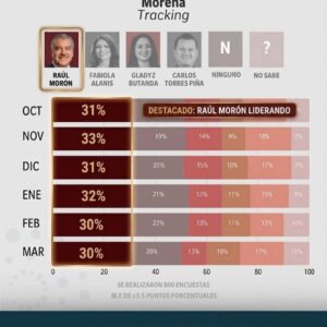 Morón firme, gana careo por la gubernatura de Michoacán 27 marzo, 202627 marzo, 2026 De acuerdo al estudio Destino 27 de CE Research, el senador de Morena se alzaría como el próximo gobernador del […]
