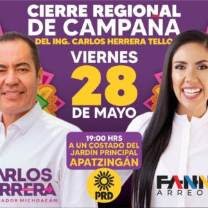 Convoca Fanny Arreola al cierre de campaña de Carlos Herrera en Apatzingán 28 mayo, 202128 mayo, 2021 El cierre regional del Equipo por Michoacán tendrá lugar este viernes a las 19:00 horas en el Jardín Principal Apatzingán, […]